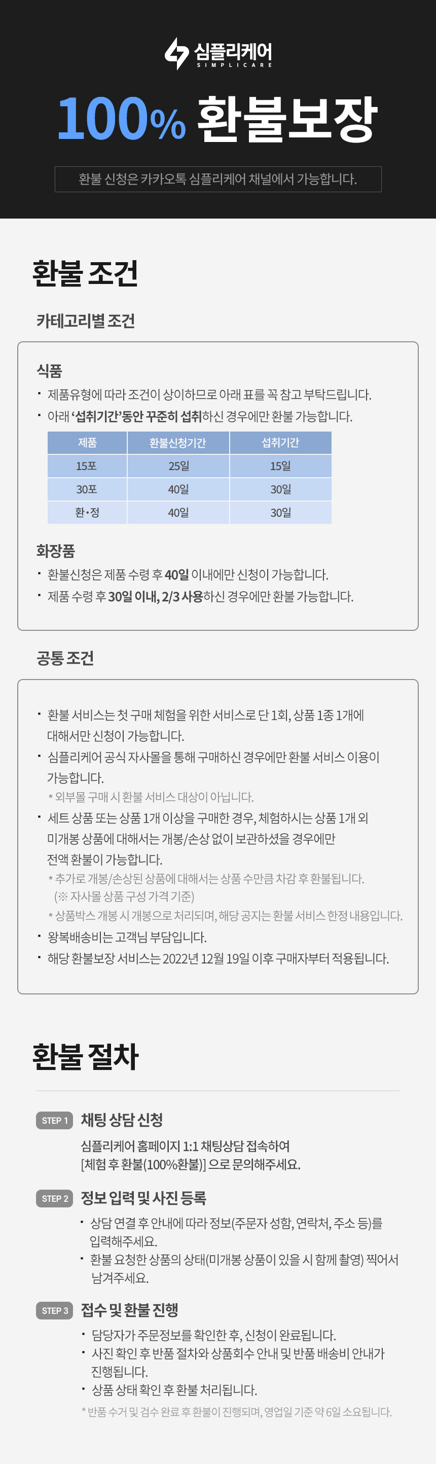 [100% 환불보상 안내] 적용 상품, 환불 조건, 환불 절차