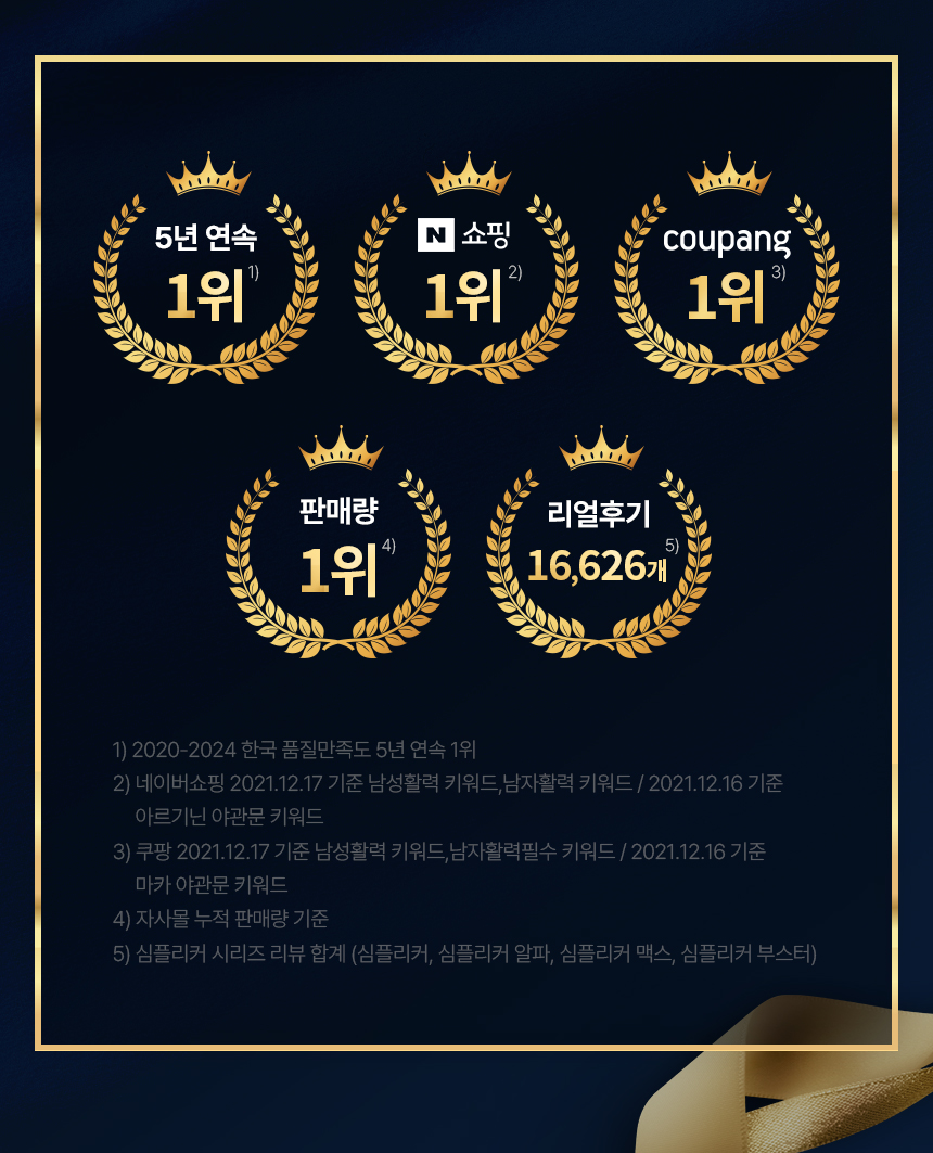 1,100만 회분 판매신화 심플리커 심플리커 핵심 4대성분 포뮬러'블랙마카+아르기닌+아연+야관문'